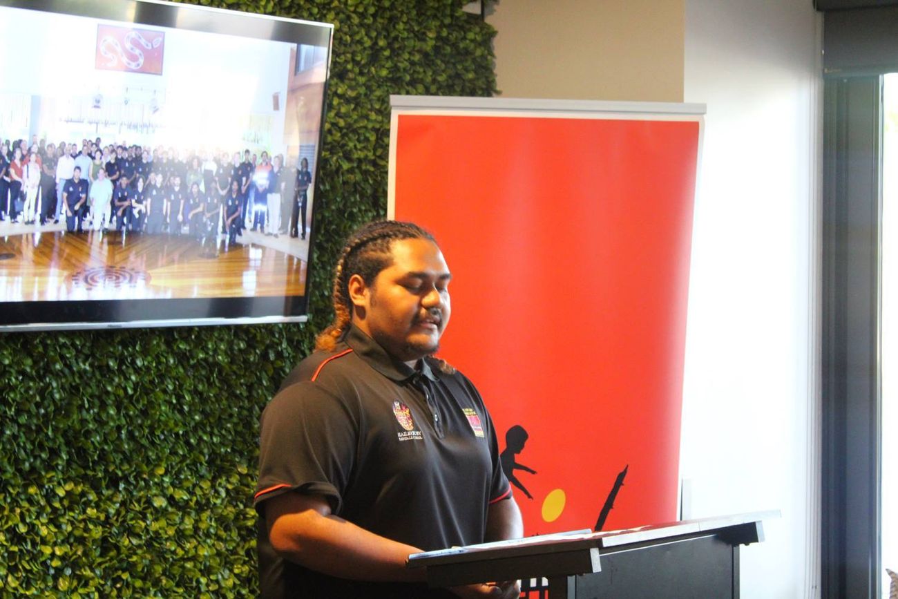 The camp began with a Year 12 dinner at Dripstone Cliffs on Sunday evening, setting the tone for the official breakfast the next morning at The H – Hotel on Mitchell. The breakfast was well attended by Clontarf Year 12's and staff, as well as several Clontarf partners, Government and Education Department representatives. Rahiri Bedggood, who emceed last year’s HRS Clontarf Awards Night, was the MC of the morning and was again impressive.