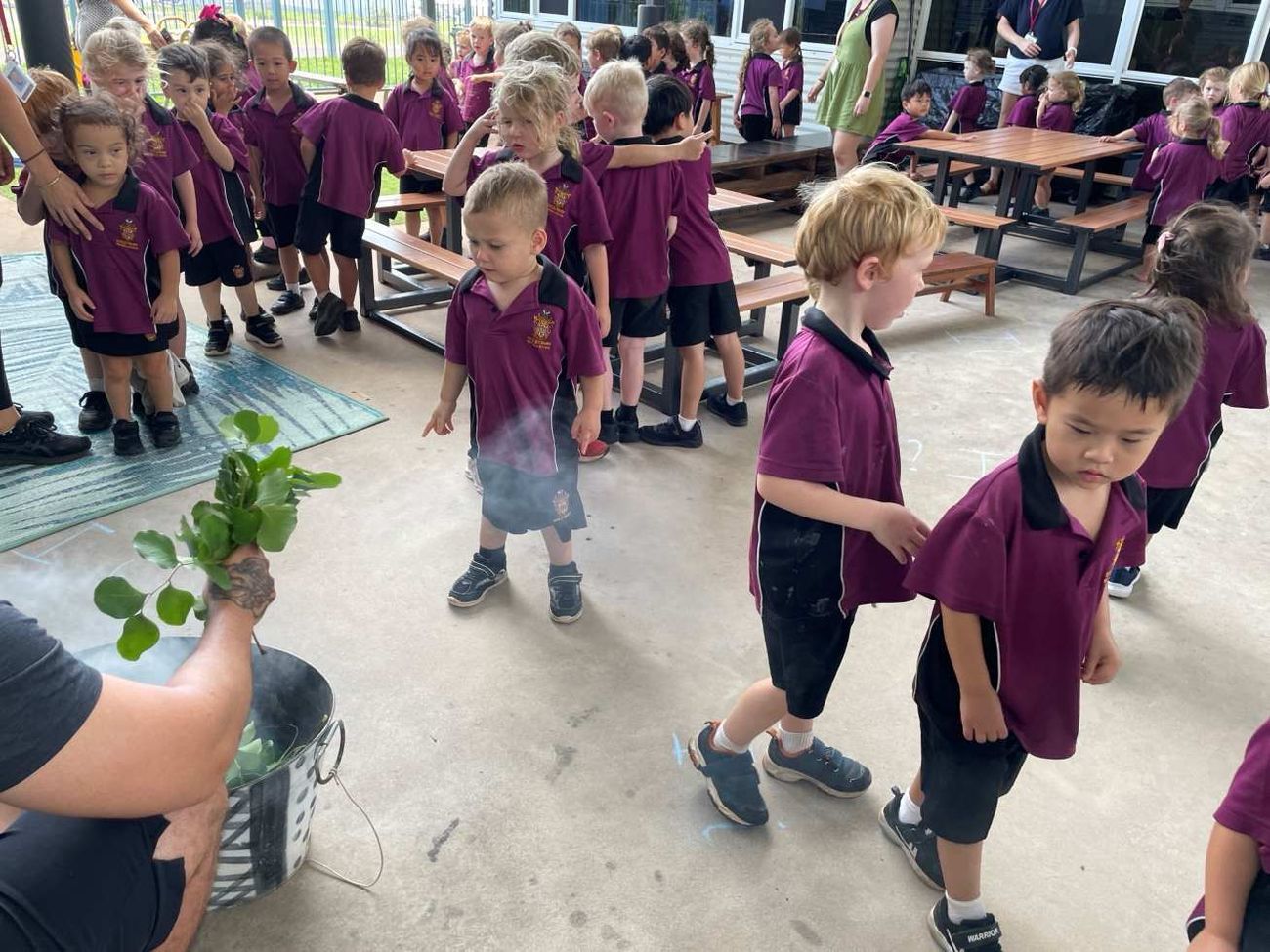Our community of 3 to 5-year-old children recently took part in a Smoking Ceremony, a traditional Indigenous practice guided by local Traditional Owners of Larrakia country. This ceremonial event not only marked the beginning of the school year, but also provided a profound opportunity for our young learners to connect with, and appreciate the rich culture of Indigenous traditions.