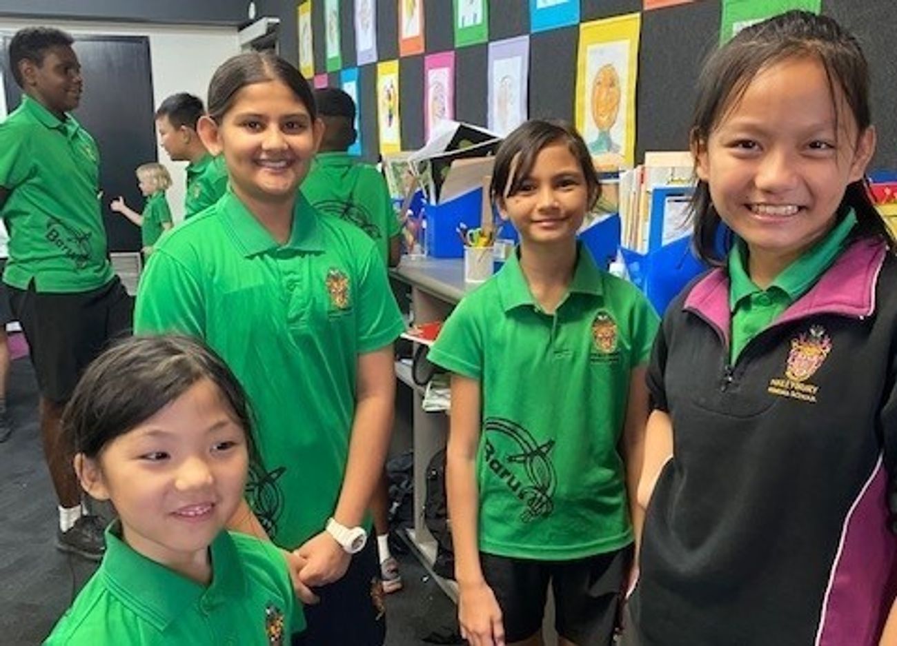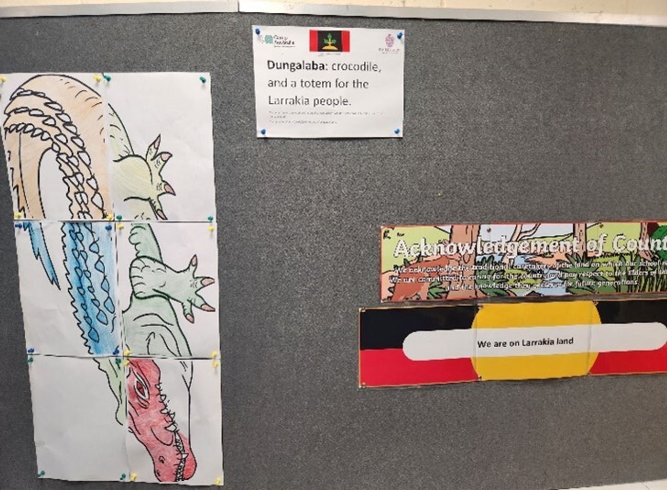 We have also set up a cultural area within our main OSHC room, and this has been reflected through a crocodile (a Larrakia people Totem) representation, produced by Erin Chaplin, Margot Vellar, Poppy Hewitt, Annika Edlund, Tara Bradley, and Alva Chai.