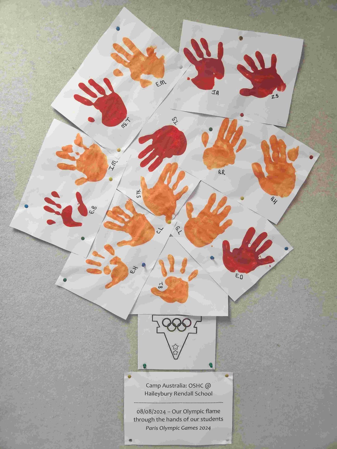 During Week 4 our OSHC team participated in Olympic themed activities to celebrate the Paris Olympics. The week saw plenty of engagement in purposeful-play activities, in particular, the Olympic Hands torch activity which was put together using hands that had been dipped into red or orange paint. The result represented the flame for our very own Olympic torch.
